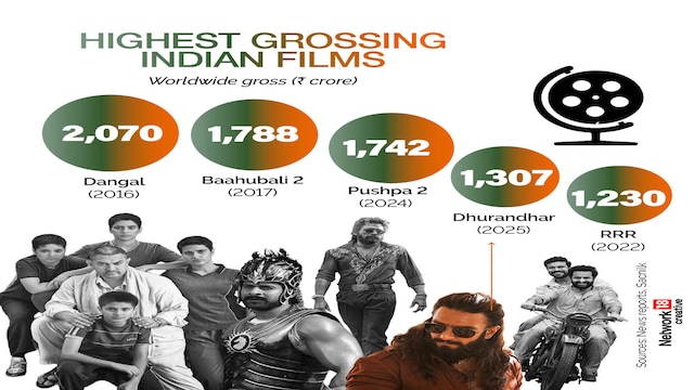 Where Dhurandhar Stands Among All-Time Hits | In terms of worldwide gross collections, Dangal remains the highest-grossing Indian film with ₹2,070 crore. It is followed by Baahubali 2: The Conclusion at ₹1,788 crore and Pushpa 2: The Rule at ₹1,742 crore. Dhurandhar Part 1 has already secured its place in the top tier with ₹1,307 crore worldwide, ahead of RRR, which earned ₹1,230 crore globally.