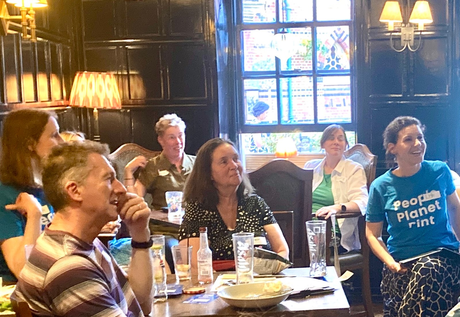 Members of People Planet Pint discuss projects, share their experiences, network, and socialise.
