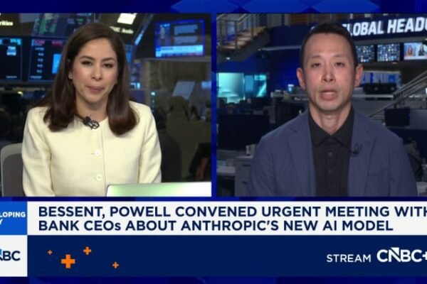 Federal Reserve Chairman Jerome Powell and Treasury Secretary Scott Bessent met with major U.S. bank CEOs this week to discuss the possible cyber risks raised by Anthropic‘s Mythos model, CNBC confirmed Friday. The bank heads were already in Washington, D.C., for a Financial Services Forum board meeting when a special gathering was called on Tuesday…