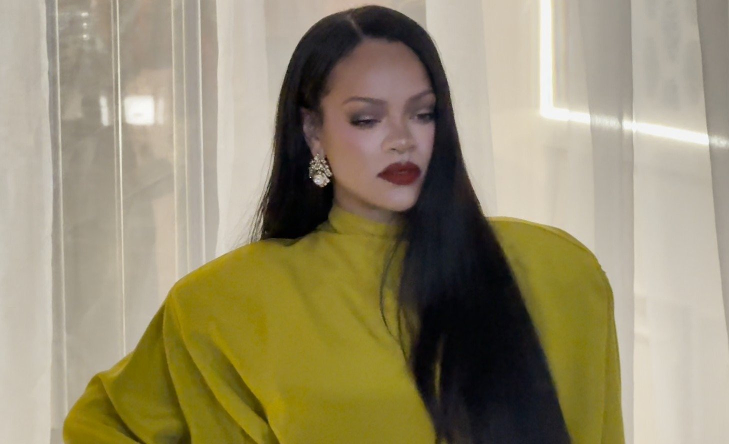 For the event, Rihanna made a bold fashion statement in a monochrome chartreuse outfit from the Mugler Fall 2026 collection. The striking look featured a flowing mock-neck top with long sleeves, paired with a matching ankle-length leather skirt that added drama and structure.